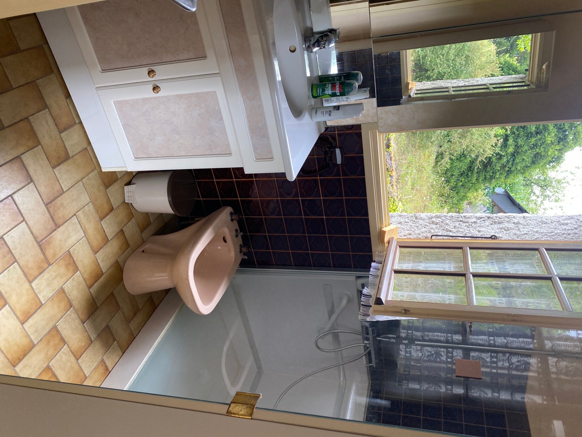 Une salle de bains avec douche,
